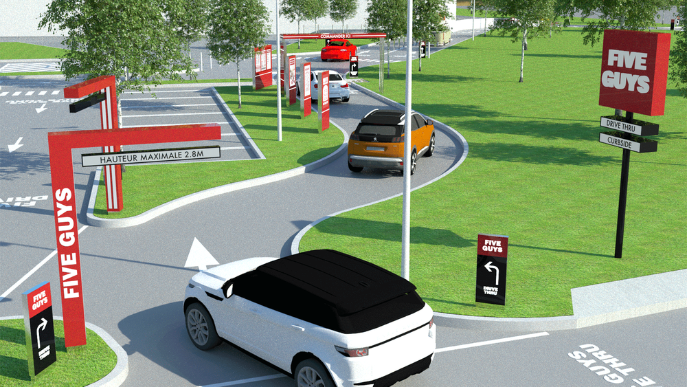 five guys drive through uk