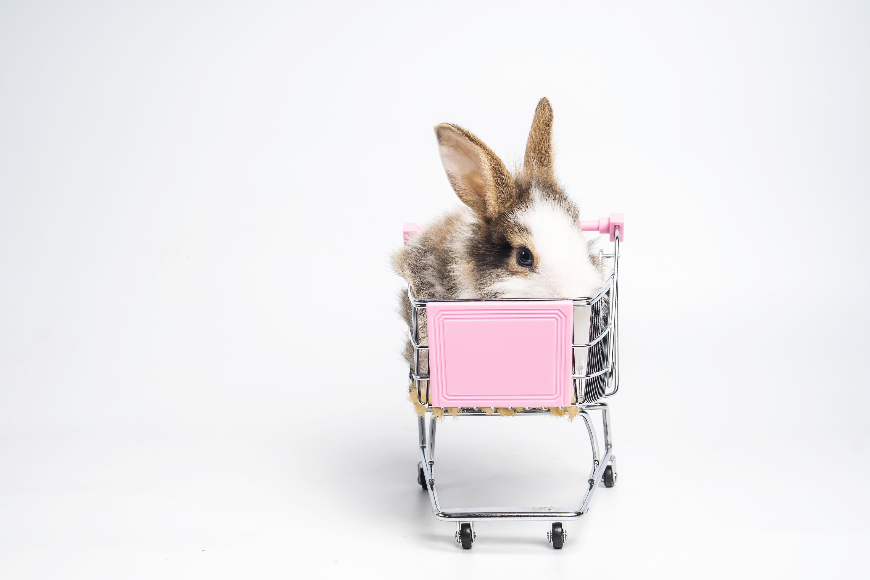 Close Up Little Brown White Rabbit Or Bunny Sitting On Shopping Cart And Funny Happy Animal Have White Isolated Background Lovely Action Of Young Rabbit As Shopping 8062962 Stock Photo At Vecteezy